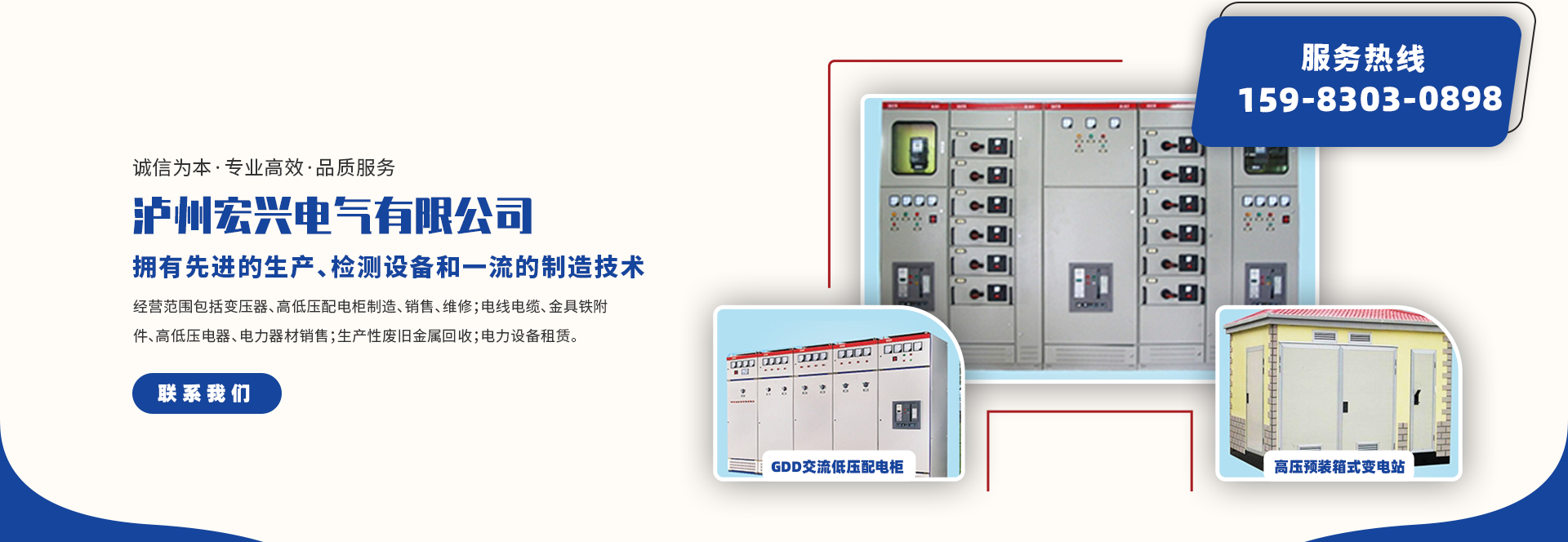 瀘州宏興電氣有限公司成立于2011年01月19日,注冊地位于四川省瀘州市龍馬潭區(qū)雙加鎮(zhèn)羅星村5組91號,法定代表人為羅忠權。成立至今,已有近十年的發(fā)展歷程,目前已初成規(guī)模,建立起了一套完整的生產(chǎn)系統(tǒng)及銷售網(wǎng)絡。公司的生產(chǎn)、檢測設備和制造技術都是高品質(zhì)的,用科技實力來全面推進信息化管理、將現(xiàn)代高科技技術融入企業(yè)生產(chǎn)經(jīng)營全過程,以提高企業(yè)的市場應變能力和生產(chǎn)力。經(jīng)營范圍包括變壓器、高低壓配電柜制造、銷售、維修;電線電纜、金具鐵附件、高低壓電器、電力器材銷...